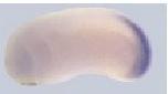 hoxa13 (homeobox A13) gene expression in Xenopus laevis embryo, assayed via in situ hybridization, NF stage 26, lateral view, anterior left, dorsal up.