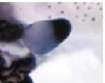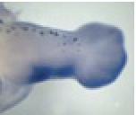 hoxa9 (homeobox A9) gene expression in Xenopus laevis embryo, assayed via in situ hybridization, NF stage 51/52, hind limb buds in normal orientation- anterior is down, posterior is up and dorsal is facing viewer.