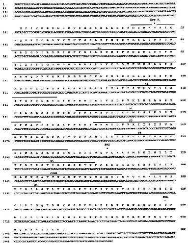 Fig. 3. Nucleotide sequence of the XKv1.10 cDNA (accession #AF323751), and the deduced amino acid sequence. The position of the tetramerization domain (T1), membrane spanning domains (S1–S6) and pore domain are indicated. Potential phosphorylation sites by protein kinase C (PKC) and protein kinase A (PKA) are indicated.