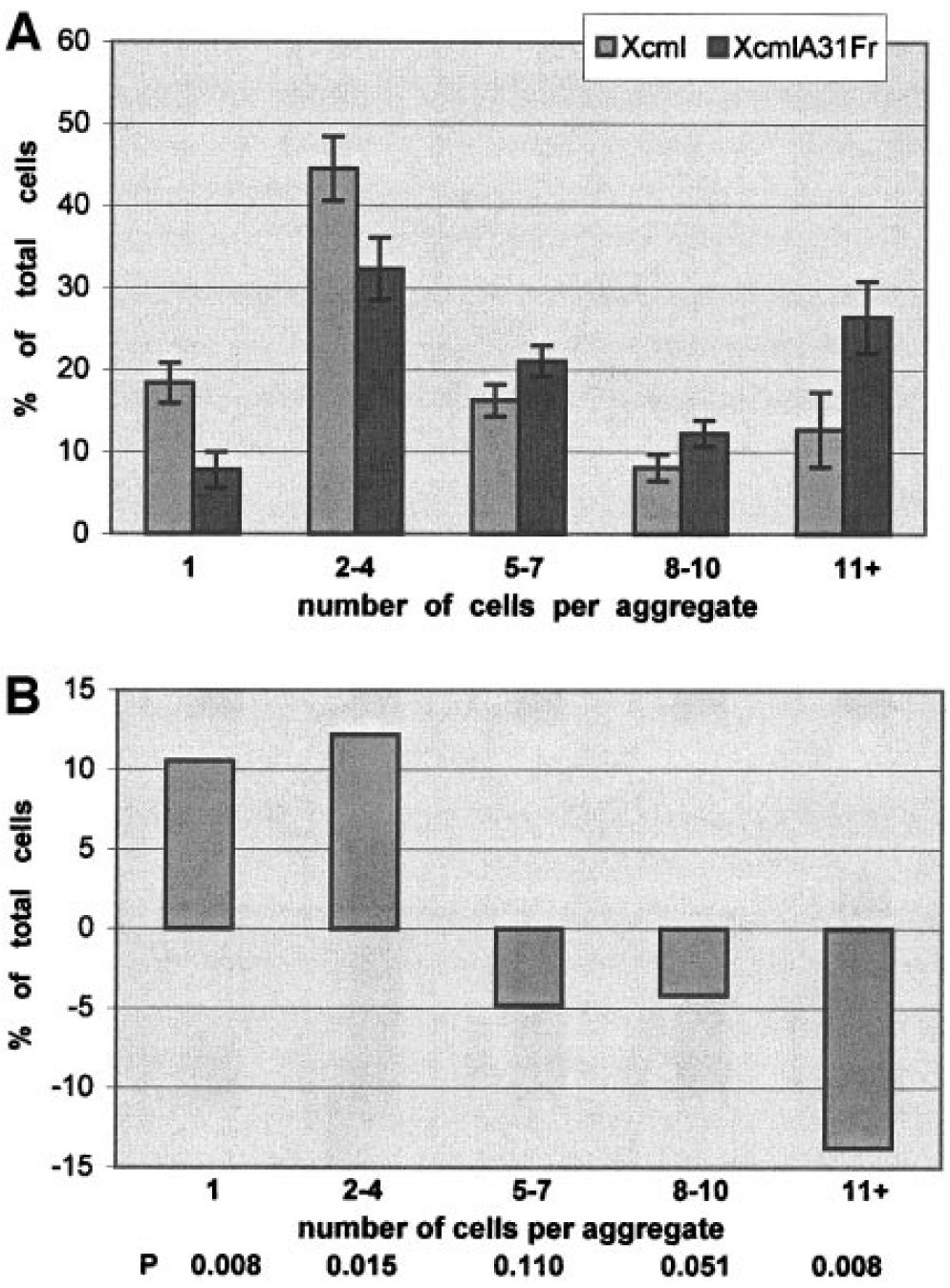 FIG. 7. Overexpression of Xcml in animal caps decreases adhesion