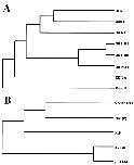 Fig. 3. Relatedness of the sequences of Xenopus keratins. (A) Type I