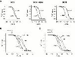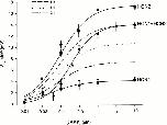 Figure 6. Coexpression of HCN1 and HCN2 generates channels with a novel cAMP dose–response relation. Mean dose–response curves for shifts in V1/2 as a function of cAMP concentration for HCN1 (closed circles, 26 patches), HCN2 (closed squares, 16 patches), and coexpression of HCN1 and HCN2 (closed diamonds, 31 patches). Solid lines show fit of the Hill equation (see materials and methods). The positions of the K1/2 values are indicated by arrows. Dash, dotted, and dash-dotted lines: linear sums of HCN1 and HCN2 dose–response curves at 1:3, 1:1, 3:1 (HCN1/HCN2) ratios.