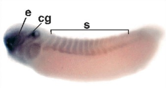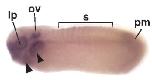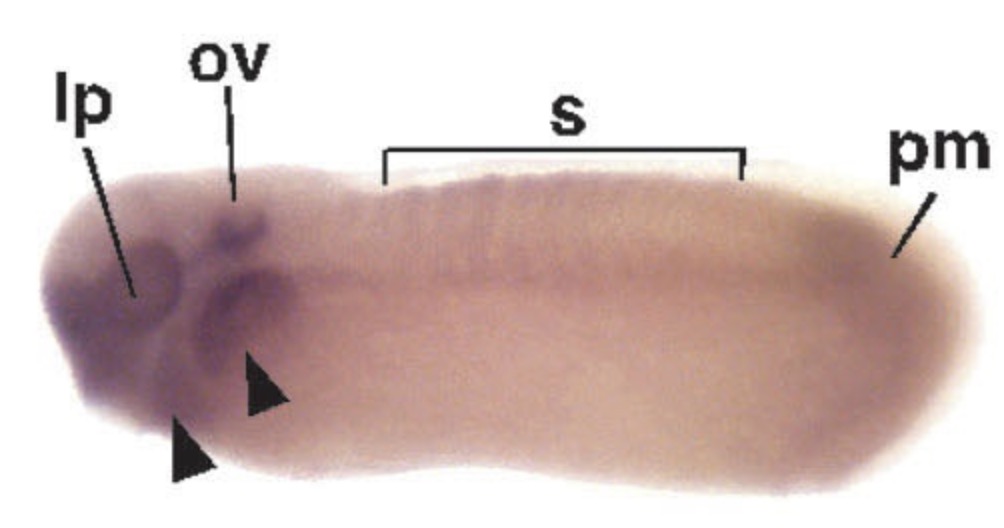 Key: lp= lensplacode; ov= otic vesicle; s= somites; pm= presomitic mesoderm.
