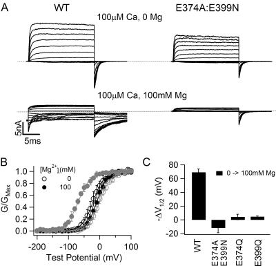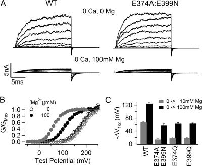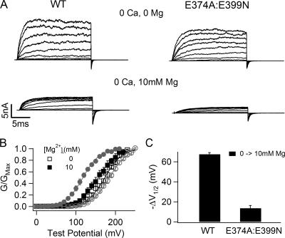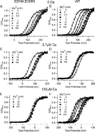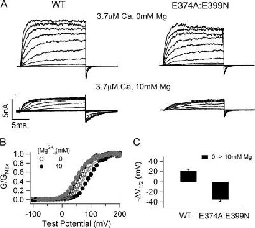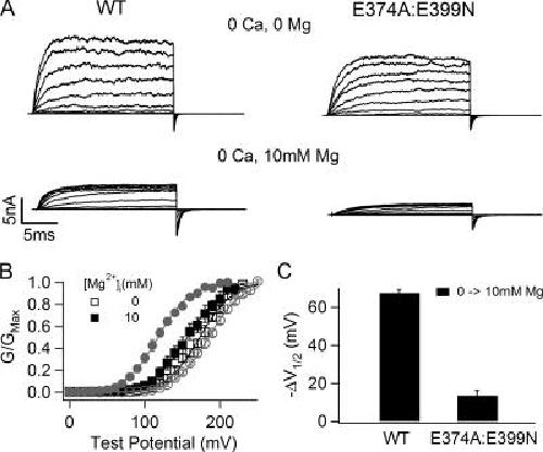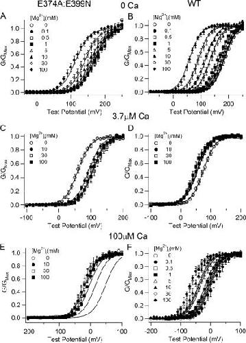 Zhang, Allosteric regulation of BK channel gating by Ca(2+) and Mg(2+) through a nonselective, low affinity divalent cation site. 2001, Pubmed , Xenbase