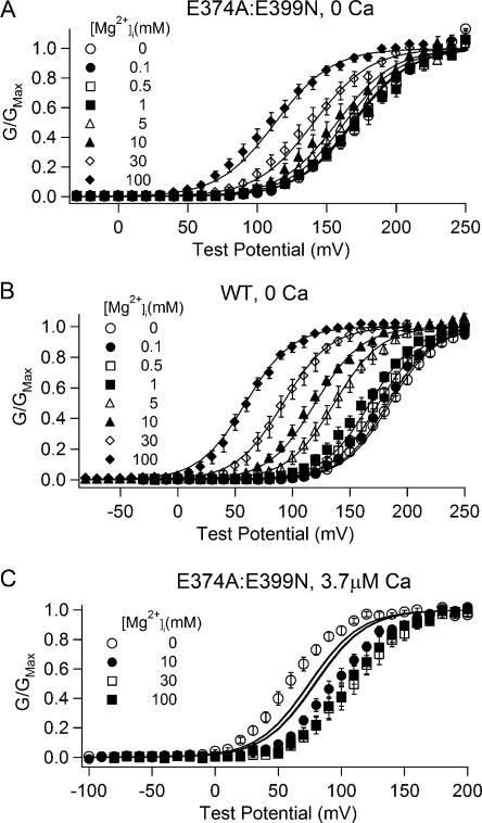 Effects of multiple metal binding sites on calcium and magnesium-dependent activation of BK channels.