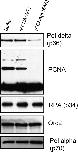 Figure 7. Loss of PCNA modification interferes with chromatin binding of DNA polymerase δ. Sperm chromatin was incubated in X. laevis egg extract containing either buffer, 0.2 μg/μL PCNA (wild type), or 0.2 μg/μL PCNA (K164R). After 40 min the chromatin was isolated and resuspended in SDS sample buffer. The samples were then analyzed by SDS-PAGE and Western blotting with antibodies recognizing the indicated proteins.