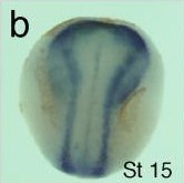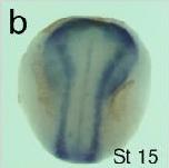 zic1 (Zic family member 1) gene expression in Xenopus laevis embryo via in situ hybridization, NF stage 15, dorsal view, anterior up
