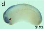 zic5 (Zic family member 5) gene expression in Xenopus laevis embryo, assayed via in situ hybridization, NF stage 26, lateral view, anterior left, dorsal up. I