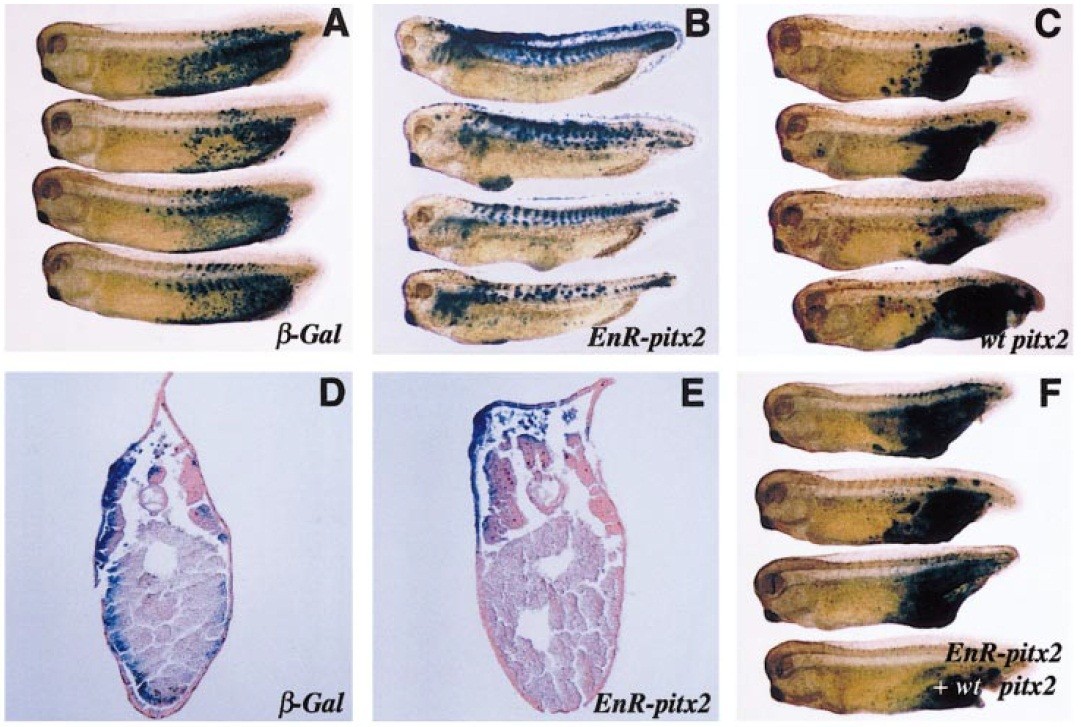 pitx2. (D, E) Histological sections from equivalent posterior positions through embryos injected with b-Gal RNA (D) or with EnR-pitx2