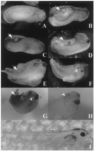 (arrowhead). (I) Uninjected control embryo at stage 40.