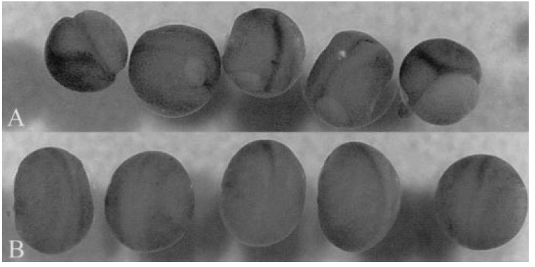 in embryos arrested at late-gastrula/early-neurula stage exhibiting