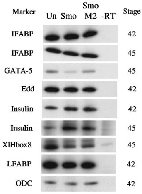expression of SmoM2. RT-PCR analysis of differentiation markers