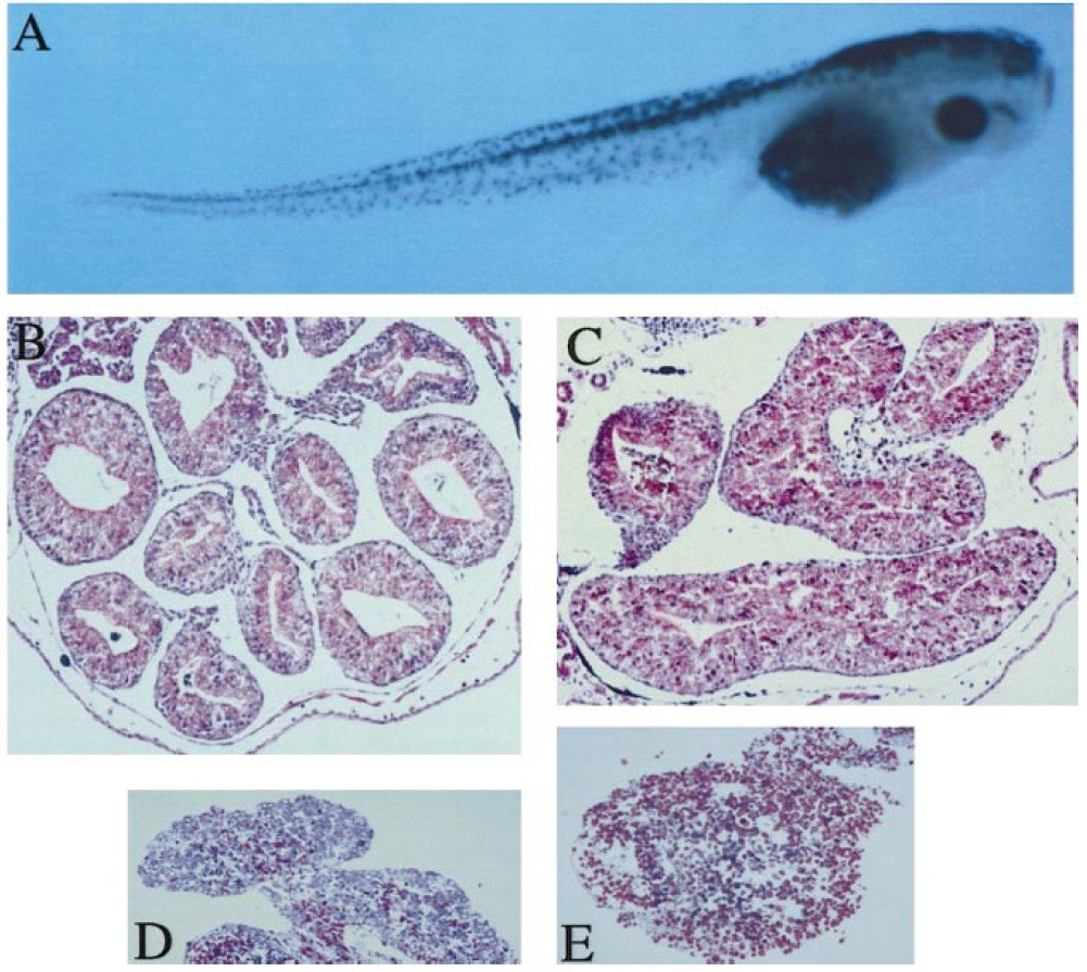 recombinant N-Shh. Histology of the midgut from whole tadpoles (B, C) and isolated intestinal explants (D, E) cultured between