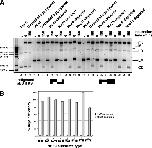 Figure 2. Mre11 is not required for efficient NHEJ. (A) Representative SYBR gold–stained gel characterization of NHEJ products for substrate types nonmatching 3′-PSS (lanes 5–15) and blunt end + 3′-PSS (lanes 16–26). Lanes 5 and 16 show 10 ng of input SacI-KpnI and SacI-SmaI substrates, respectively. The input in lane 2 corresponds to 10 ng of undigested pBS KS II. mt, mitochondrial DNA from X. laevis extract; M, higher multimer forms; LD, linear dimer; LM, linear monomer (substrate); CC, closed circle. (B) The intensity of the bands corresponding to NHEJ products were quantified using the FluorImager system for each NHEJ reaction in Ku70- and Mre11-depleted extracts and were expressed as percent repair efficiency (see Results). The labeling on the x axis refers to the NHEJ substrate type as indicated in Table SI (available at http://www.jcb.org/cgi/content/full/jcb.200506029/DC1).