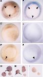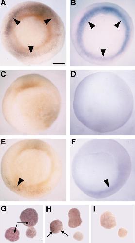 in the head. (B) Expression of HoxB9 in uninjected ectoderm recombined with dorsal mesoderm (arrowhead denotes condensed staining and
