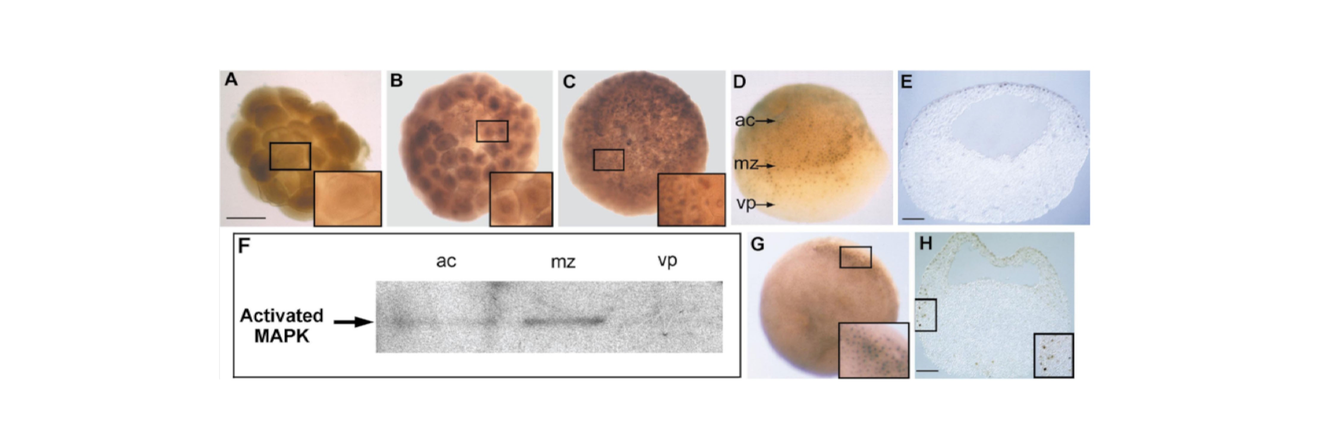 the expression of activated MAPK in a tail-like protrusion. Note the expression of activated MAPK in the mesoderm is decreased or absent