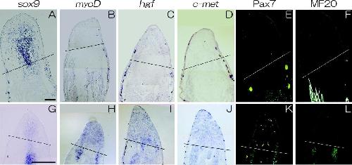 Muscle formation in regenerating Xenopus froglet limb., Dev Dyn 2005 |