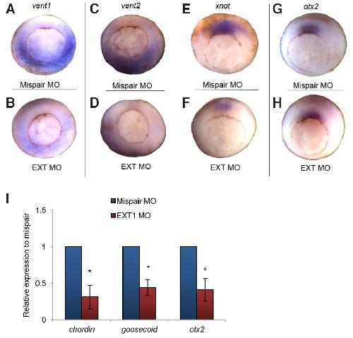 Zygotic expression of Exostosin1 (Ext1) is required for BMP signaling and establishment of dorsal-ventral pattern in Xenopus., Int J Dev Biol 2014 |