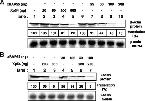RAP55, a cytoplasmic mRNP component, represses translation in Xenopus oocytes., J Biol Chem 2006 |