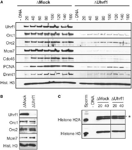 Depletion of Uhrf1 inhibits chromosomal DNA replication in Xenopus egg extracts., Nucleic Acids Res 2013 |