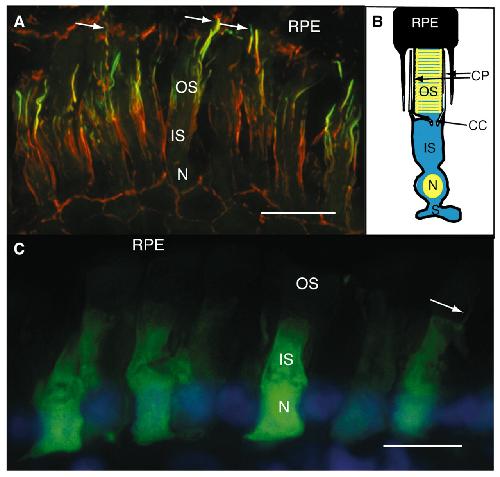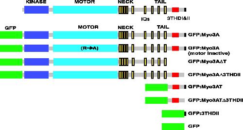 Myosin 3A transgene expression produces abnormal actin filament bundles in transgenic Xenopus laevis rod photoreceptors., J Cell Sci 2004 |
