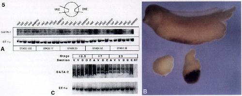Ventral expression of GATA-1 and GATA-2 in the Xenopus embryo defines induction of hematopoietic mesoderm., Dev Biol 1994 |