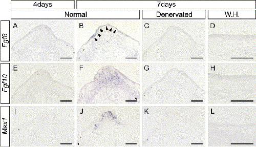Nerve-dependent and -independent events in blastema formation during Xenopus froglet limb regeneration., Dev Biol 2005 |