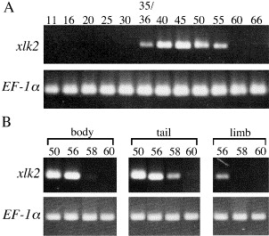 A novel Xenopus laevis larval keratin gene, xlk2: its gene structure and expression during regeneration and metamorphosis of limb and tail., Biochim Biophys Acta 2006 |