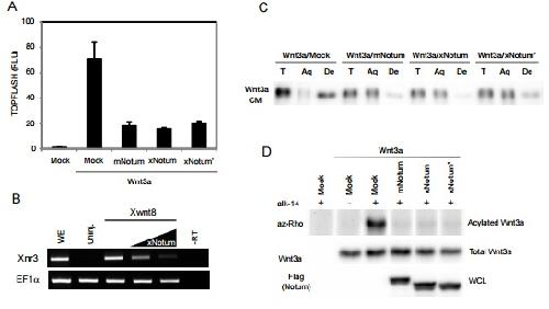 Notum is required for neural and head induction via Wnt deacylation, oxidation, and inactivation., Dev Cell 2015 |