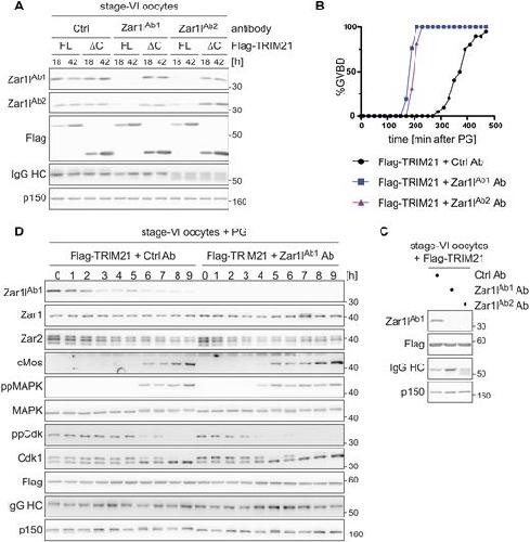 ???displayAntibody.papersRecent??? The translation regulator Zar1l controls timing of meiosis in Xenopus oocytes., Development 2022