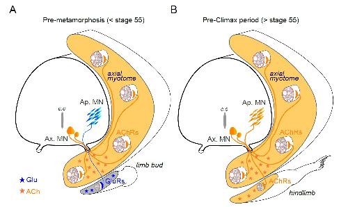 Functional limb muscle innervation prior to cholinergic transmitter specification during early metamorphosis in Xenopus., Elife 2018 |