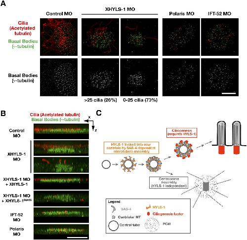 The hydrolethalus syndrome protein HYLS-1 links core centriole structure to cilia formation., Genes Dev 2009 |