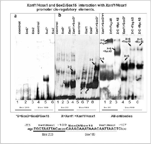 HMG-box factor SoxD/Sox15 and homeodomain-containing factor Xanf1/Hesx1 directly interact and regulate the expression of Xanf1/Hesx1 during early forebrain development in Xenopus laevis., Gene 2018 |