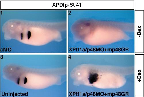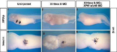 Combined ectopic expression of Pdx1 and Ptf1a/p48 results in the stable conversion of posterior endoderm into endocrine and exocrine pancreatic tissue., Genes Dev 2006 |