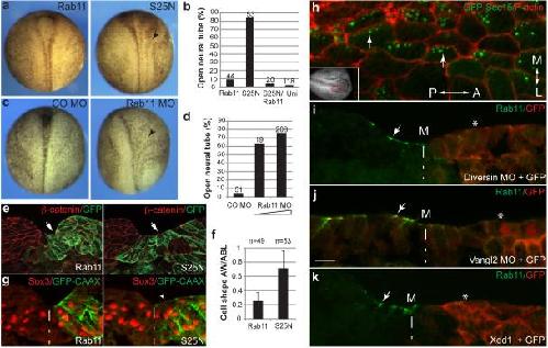Role of Rab11 in planar cell polarity and apical constriction during vertebrate neural tube closure., Nat Commun 2014 |