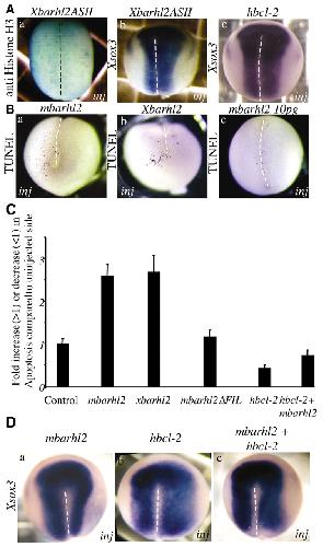 The pro-apoptotic activity of a vertebrate Bar-like homeobox gene plays a key role in patterning the Xenopus neural plate by limiting the number of chordin- and shh-expressing cells., Development 2005 |