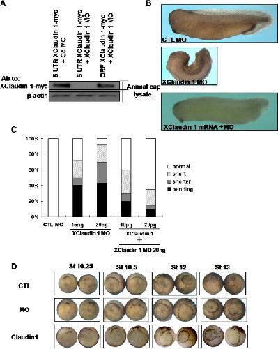 Xclaudin 1 is required for the proper gastrulation in Xenopus laevis., Biochem Biophys Res Commun 2010 |
