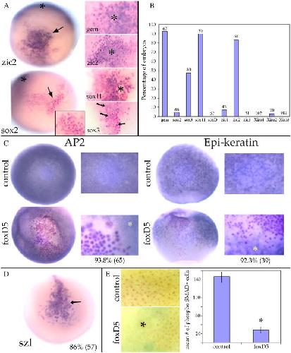 foxD5 plays a critical upstream role in regulating neural ectodermal fate and the onset of neural differentiation., Dev Biol 2009 |