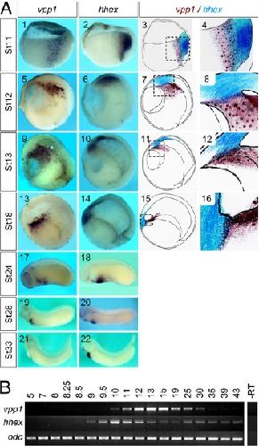 Xhex-expressing endodermal tissues are essential for anterior patterning in Xenopus., Mech Dev 2002 |