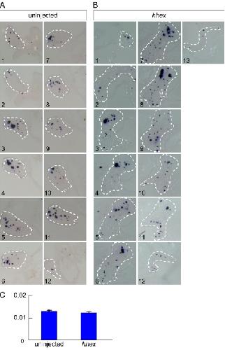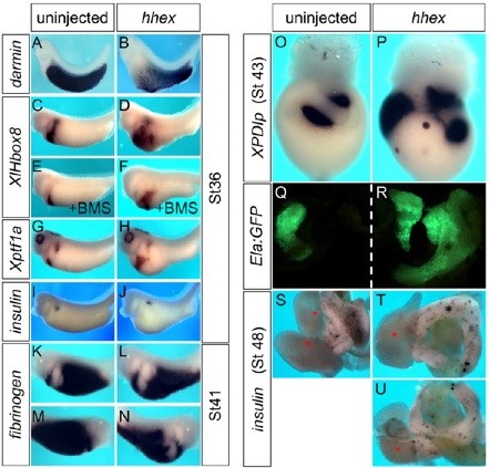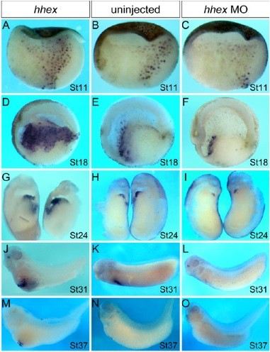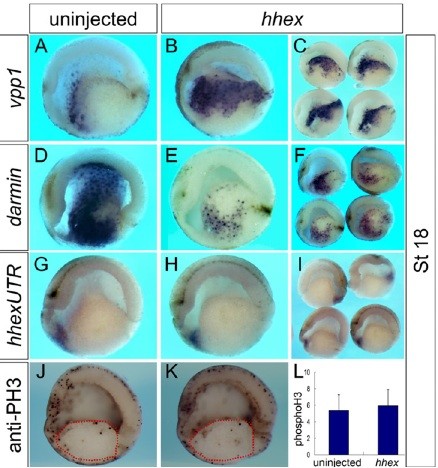 Homeoprotein hhex-induced conversion of intestinal to ventral pancreatic precursors results in the formation of giant pancreata in Xenopus embryos., Proc Natl Acad Sci U S A 2012 |