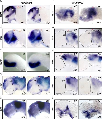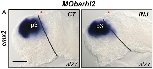 The conserved barH-like homeobox-2 gene barhl2 acts downstream of orthodentricle-2 and together with iroquois-3 in establishment of the caudal forebrain signaling center induced by Sonic Hedgehog., Dev Biol 2014 |