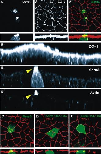 Shroom induces apical constriction and is required for hingepoint formation during neural tube closure., Curr Biol 2003 |