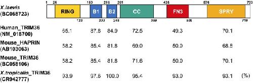 Trim36/Haprin plays a critical role in the arrangement of somites during Xenopus embryogenesis., Biochem Biophys Res Commun 2009 |