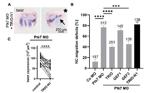 The Rho GEF Trio functions in contact inhibition of locomotion of neural crest cells by interacting with Ptk7., Development 2025 |