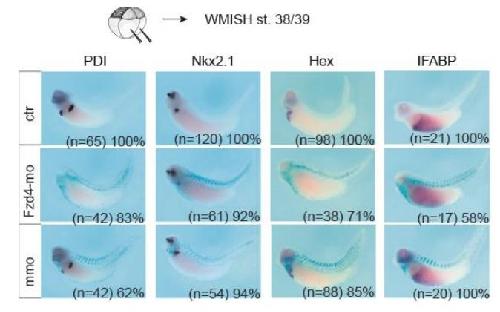A secreted splice variant of the Xenopus frizzled-4 receptor is a biphasic modulator of Wnt signalling., Cell Commun Signal 2013 |