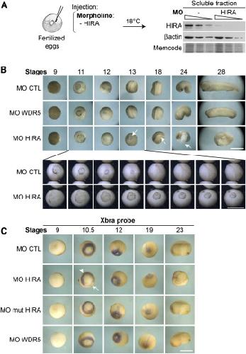 A developmental requirement for HIRA-dependent H3.3 deposition revealed at gastrulation in Xenopus., Cell Rep 2012 |