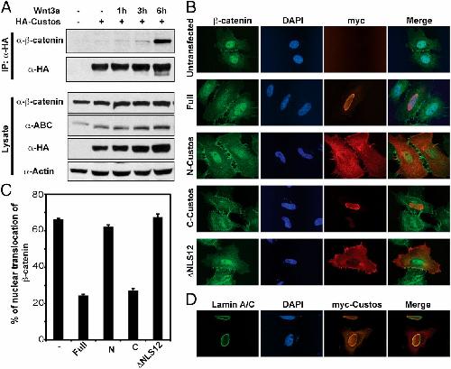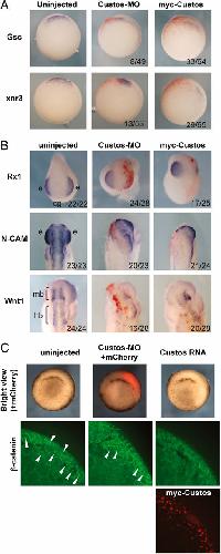 Custos controls β-catenin to regulate head development during vertebrate embryogenesis., Proc Natl Acad Sci U S A 2014 |