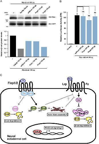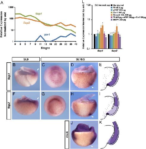G protein-coupled receptors Flop1 and Flop2 inhibit Wnt/β-catenin signaling and are essential for head formation in Xenopus., Dev Biol 2015 |