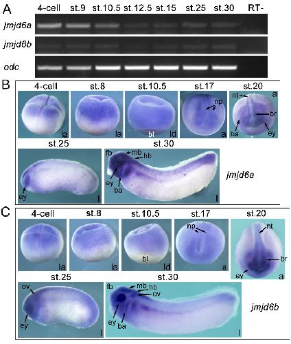 JmjC Domain-containing Protein 6 (Jmjd6) Derepresses the Transcriptional Repressor Transcription Factor 7-like 1 (Tcf7l1) and Is Required for Body Axis Patterning during Xenopus Embryogenesis., J Biol Chem 2015 |