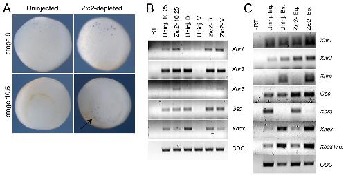Maternal Xenopus Zic2 negatively regulates Nodal-related gene expression during anteroposterior patterning., Development 2005 |